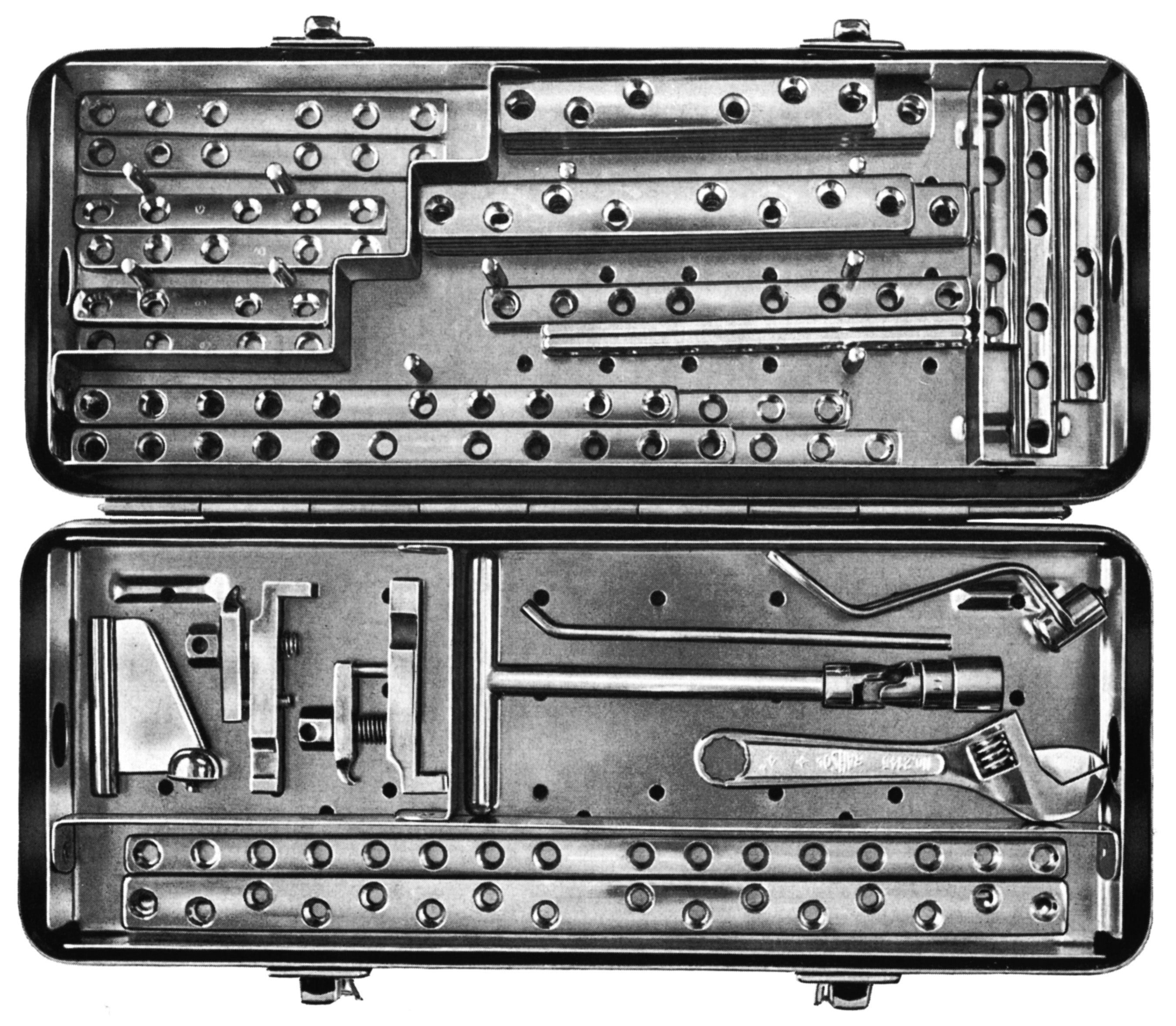 Der Mechaniker Mathys (Bild oben), der schon als Jugendlicher in Jegenstorf «Motörli-Röbu» genannt worden war, entpuppt sich als genialer Entwickler von anspruchsvollen Gerätschaften für den Operationssaal. Innert kürzester Zeit entwickelt er ein "Instrumentarium", das bis zum heutigen Tag Standards in der Knochenchirurgie gesetzt hat (Bild unten).